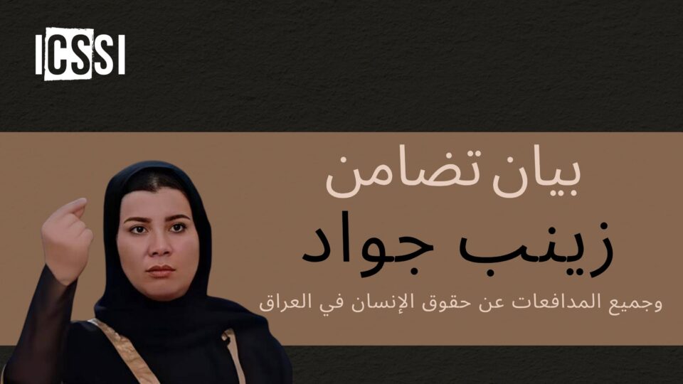 تعرب مبادرة التضامن مع المجتمع المدني العراقي عن تضامنها الكامل مع المحامية العراقية والمدافعة البارزة عن حقوق النساء زينب جواد، التي تتعرض منذ فترة لهجمات ممنهجة تهدف إلى معاقبتها على نشاطها المشروع في الدفاع عن الحريات المدنية وحقوق الإنسان.